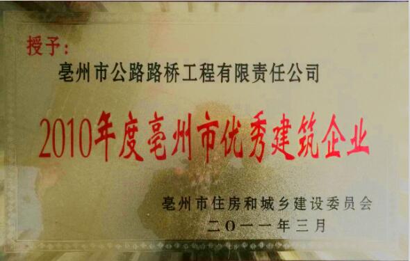 亳州市公路路橋工程有限責(zé)任公司是亳州市具有國(guó)家二級(jí)總承包資質(zhì)的公路工程施工企業(yè),它的前身是亳州市公路工程處。